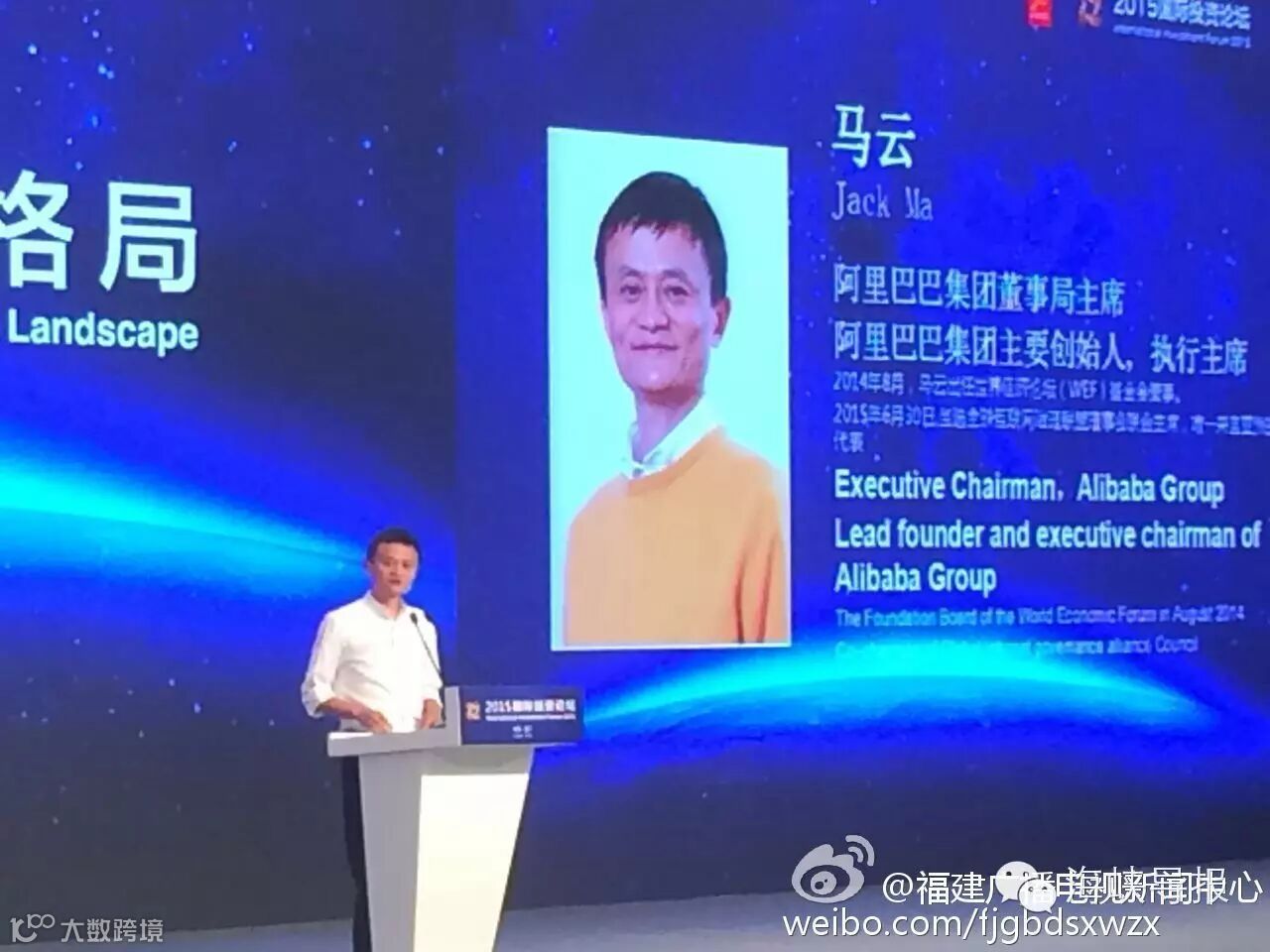 9月8日上午,阿里巴巴创始人马云正式亮相2015厦门国际投资论坛主论坛,并发表主题演讲。