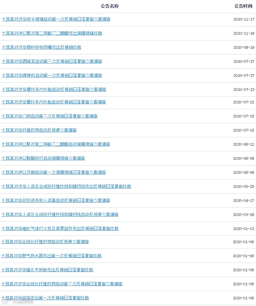 其实此前土耳其就是对中国产品发起贸易救济调查案件较多的国家,在2020年也继续对部分产品发起调查、加征关税。