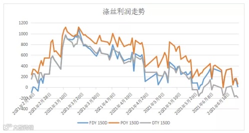 但目前来说,就涤纶长丝利润而言,目前它的利润并不理想,处于亏损边缘,尤其是DTY已经出现亏损,厂家的挺价意愿也比较强烈。
