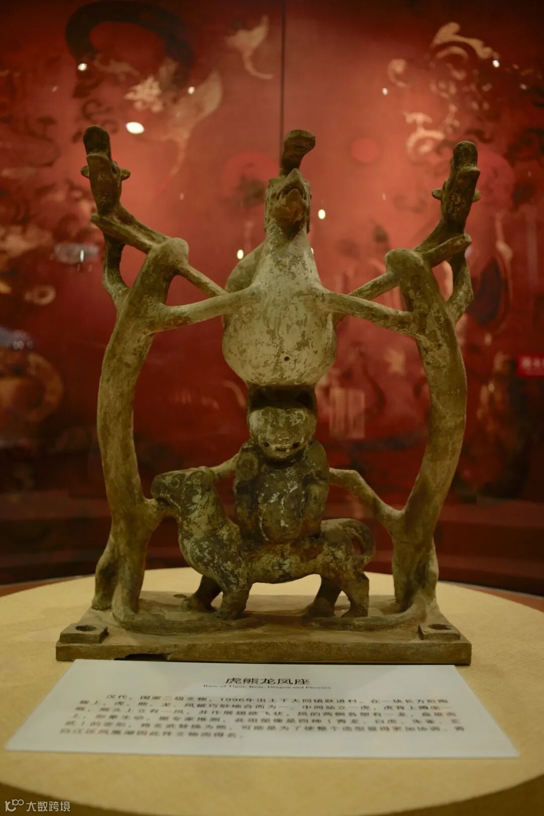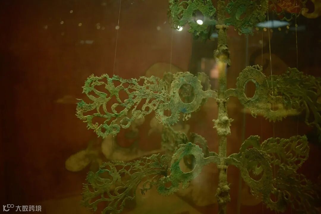 分别为摇钱树、虎熊龙凤座、鹤形铜熏炉