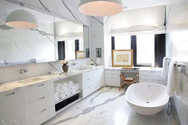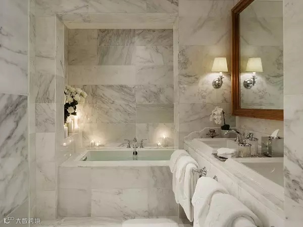 直纹白(马尔马拉白)是一种独特的大理石,就像上面例子,水平平衡的大理石组合展示一个现代化的精致浴室,其优雅的氛围让你的家看起来像一个豪华酒店。