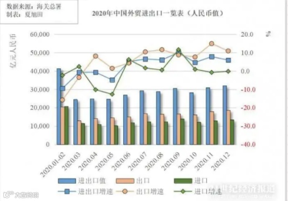 海关总署1月14日公布的数据显示,2020年,我国货物贸易进出口总值32.16万亿元人民币,比2019年增长1.9%。其中,出口17.93万亿元,增长4%;进口14.23万亿元,下降0.7%;贸易顺差3.7万亿元,增加27.4%。同时据数据显示,2020年中国对美出口总额达到3.1万亿元人民币,与2019年的对美出口增速相比,增长了7.9%。由此,美国成为了2020年中国对外出口总额最大的国家。