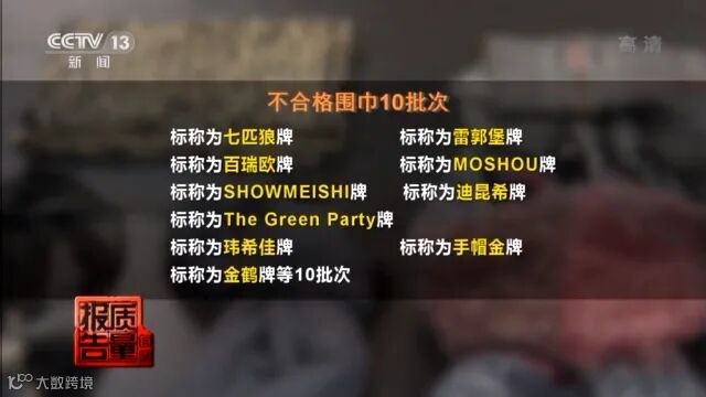 经过检测,不合格的围巾,包括标称为七匹狼牌、 标称为雷郭堡牌、 标称为百瑞欧牌等10批次。