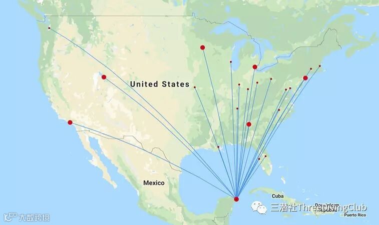 中国去往坎昆目前没有直达航班,转机一般在美国、墨西哥城或欧洲进行,价格一般为美国中转较为便宜且选择很多,但注意的是需要过境签,这个后面会说到;墨西哥城中转时间较少,不需要过境签,但价格没有竞争力;欧洲转的话比较坑,时间长,价格贵,可能还需要签证。