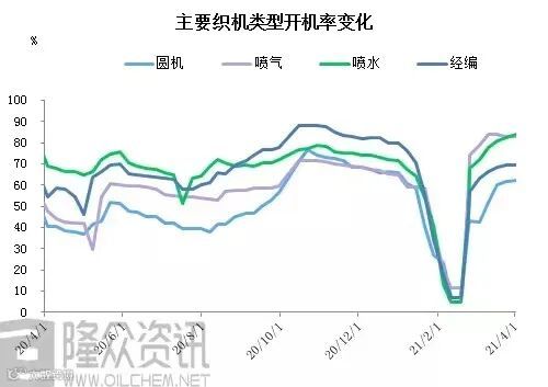 如今扭曲的供需市场,影响了价格的走势。其实从点来说,价格由供需决定;从线来说,供需被价格影响。在这两个纠结的因素中,织造厂家可以说是看着市场“脸色”在行事。在需求季节尚未真正到来之前,厂家操作较为保守,行业开机率处于相对低位。