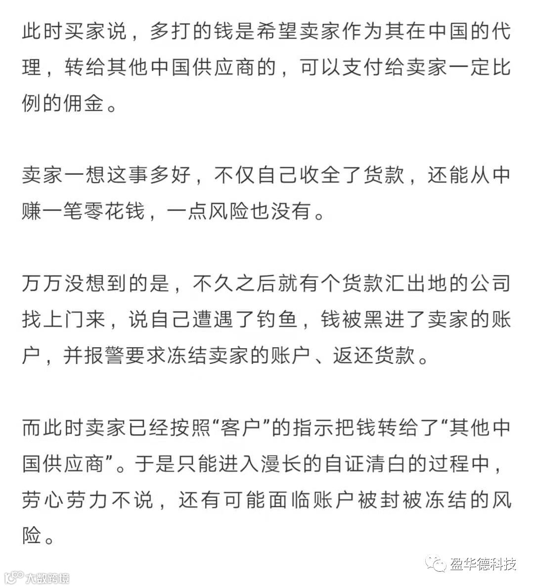 对于给客人提供“采购代理”的外贸人,切记你的职能不应该是简单的“出租账户”。要帮客人代付款,可以,但必须是在跟进订单的情况下,再帮付该订单相应的款项相对才会安全,代付款时也要让对方提供授权书等证明。
