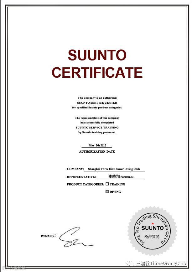 感谢SUUNTO潜水电脑表国内总代松涛贸易的信任和支持。我们也会一如既往的努力。