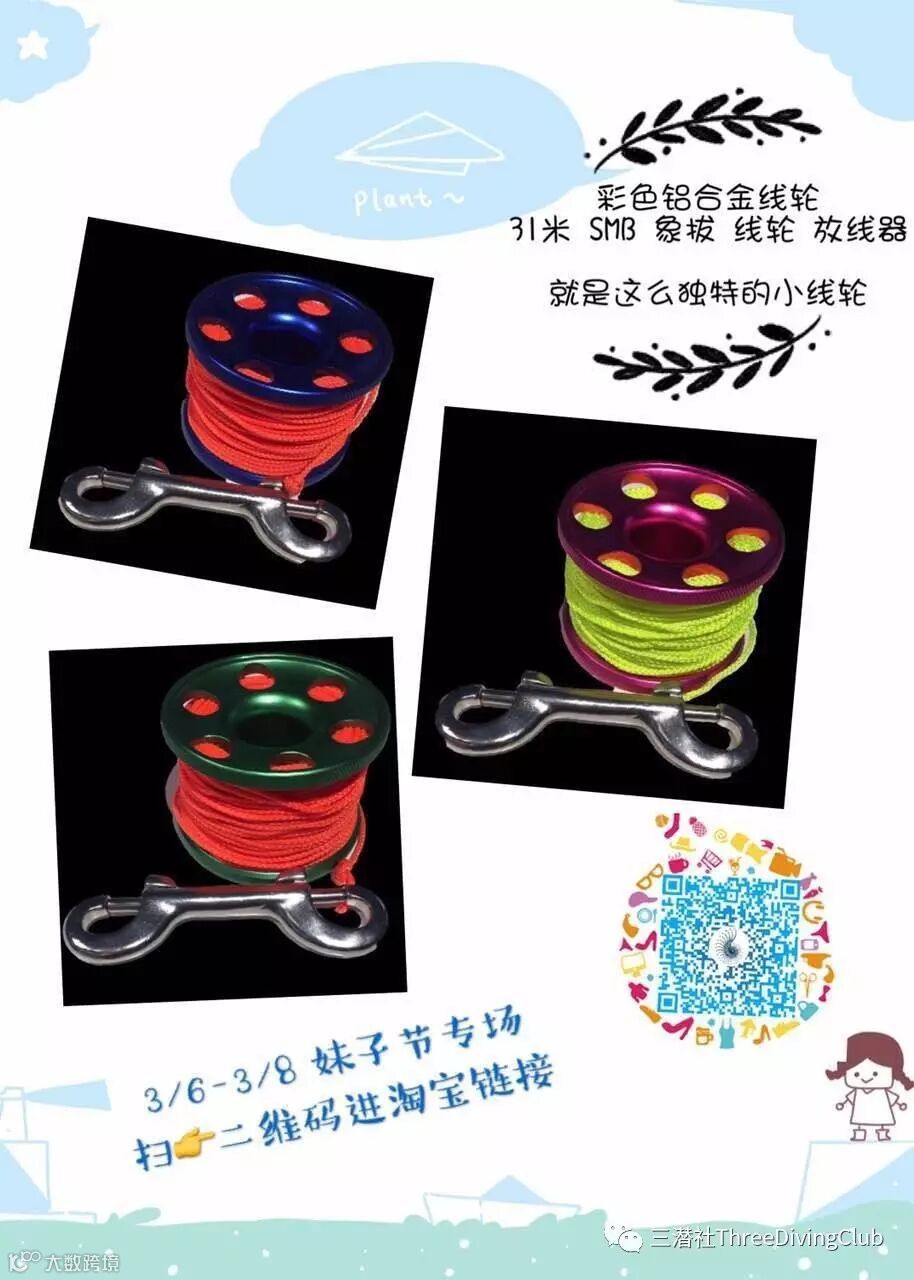 建议30米标准线轮。象拔我们更建议在五米三分钟开始之前就在七八米甚至更深释放,可以让象拔在到达水面的时候可以膨胀的更饱满;也可以降低某些不合格潜水员在上升中无法控制浮力直接飞到水面被船爆头的风险,如果遇到强流也可以提早释放象拔并顺流上升让水面船只提前发现以免被水流冲出太远船工看不到