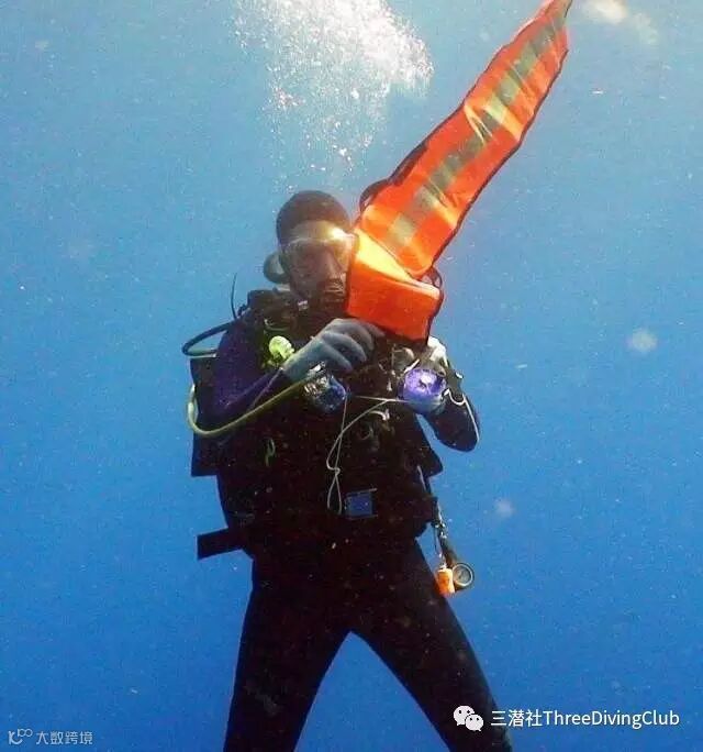 其实作为常去开放水域潜水的潜水员,虽然有导潜带队,但是当遇到大流、人多、能见度低的情况下,难免会有独立升水的情况。此时,身怀神技的你,不慌不忙,拿出自己的SMB,稳稳放个气球。即使有些浪涌,水面上的潜水船只要看到这个橙色(黄色、甚至是粉红色。。。)的浮标升出水,就知道有潜水员在下面了。