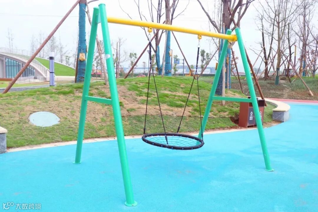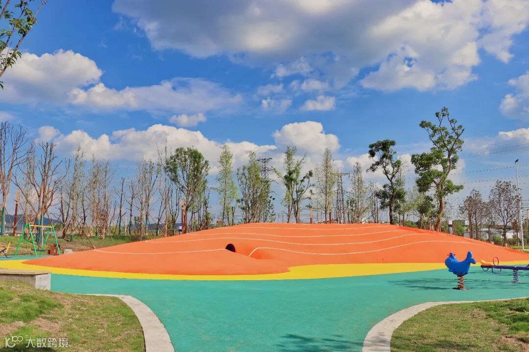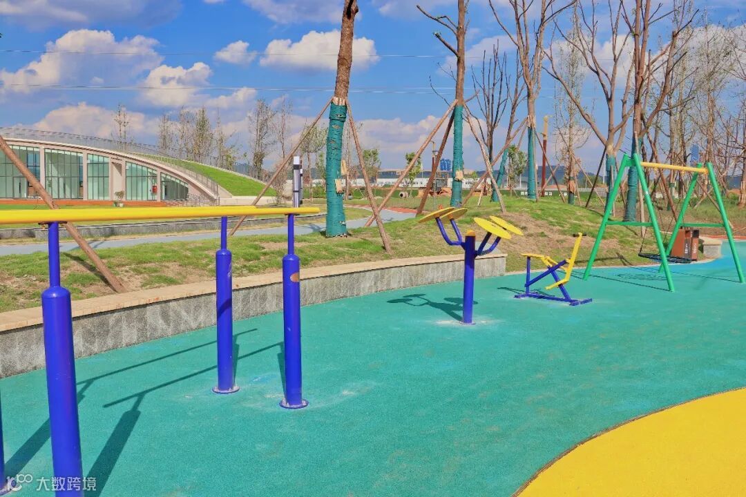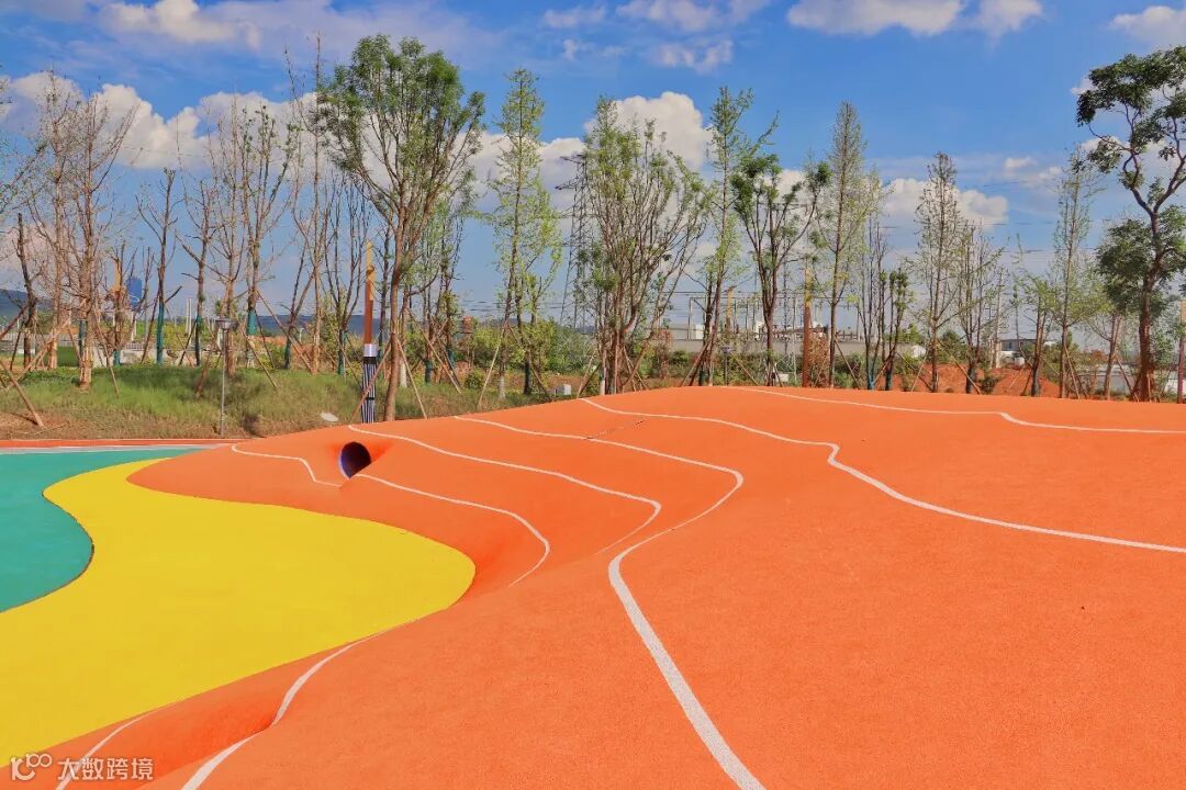 横穿动力草坪,漫步几里,就能来到儿童游乐场。远远望见,明亮艳丽的橙色结合朝气黄与梦幻蓝,瞬间活力满满,这是游乐场的儿童特色攀爬场,高低起伏不大,弧面圆润,不易摔伤,专为儿童设计。场内设置多种健身器材,周末假日,带着小孩来这里打卡,一定很棒!
