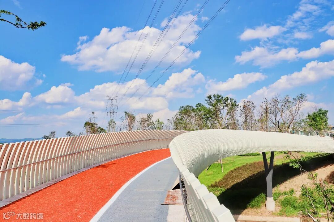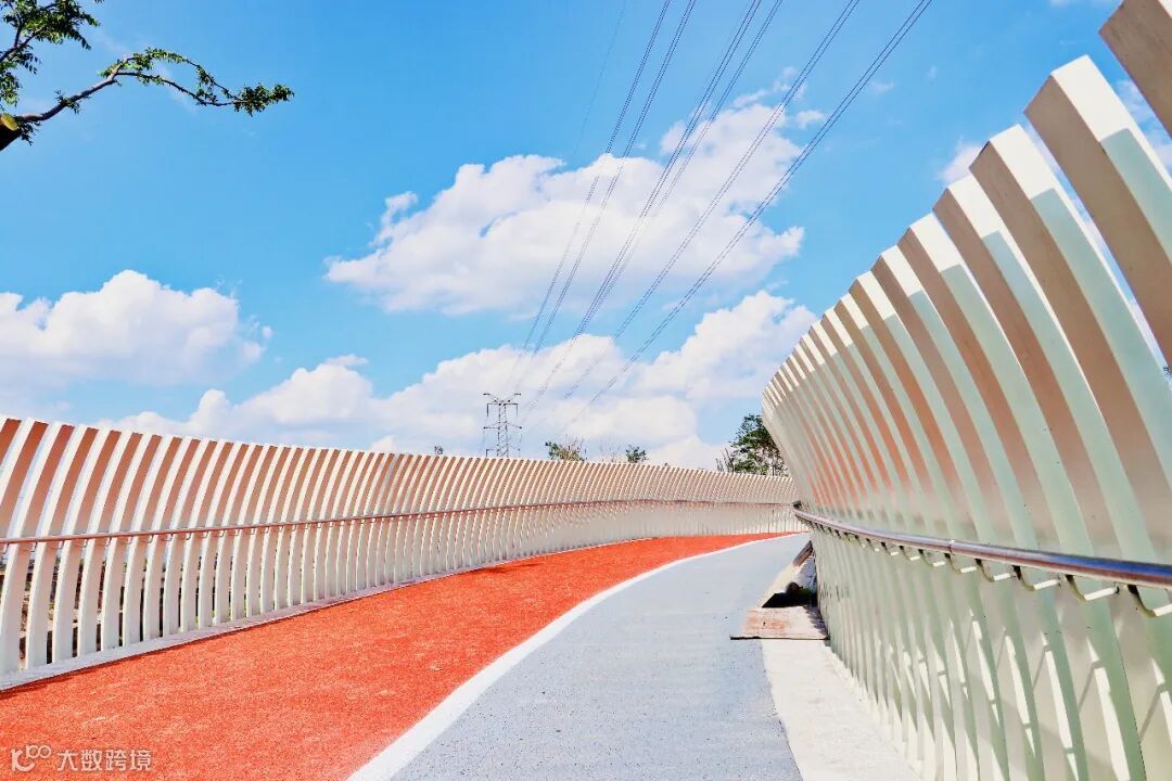 弧形爽朗,白色温润,这里是环形栈桥。为跨越桤木河,连接北侧公园,环形栈桥应运而生。利落的弧形线条,贴合运动公园的概念,白色温润如玉,与碧水青山的公园相融,尤为和谐。站在桥上,吹着夏日晚风,听着水流溪声,望着桤木河景,与好友谈天说地,仿若无所不能。