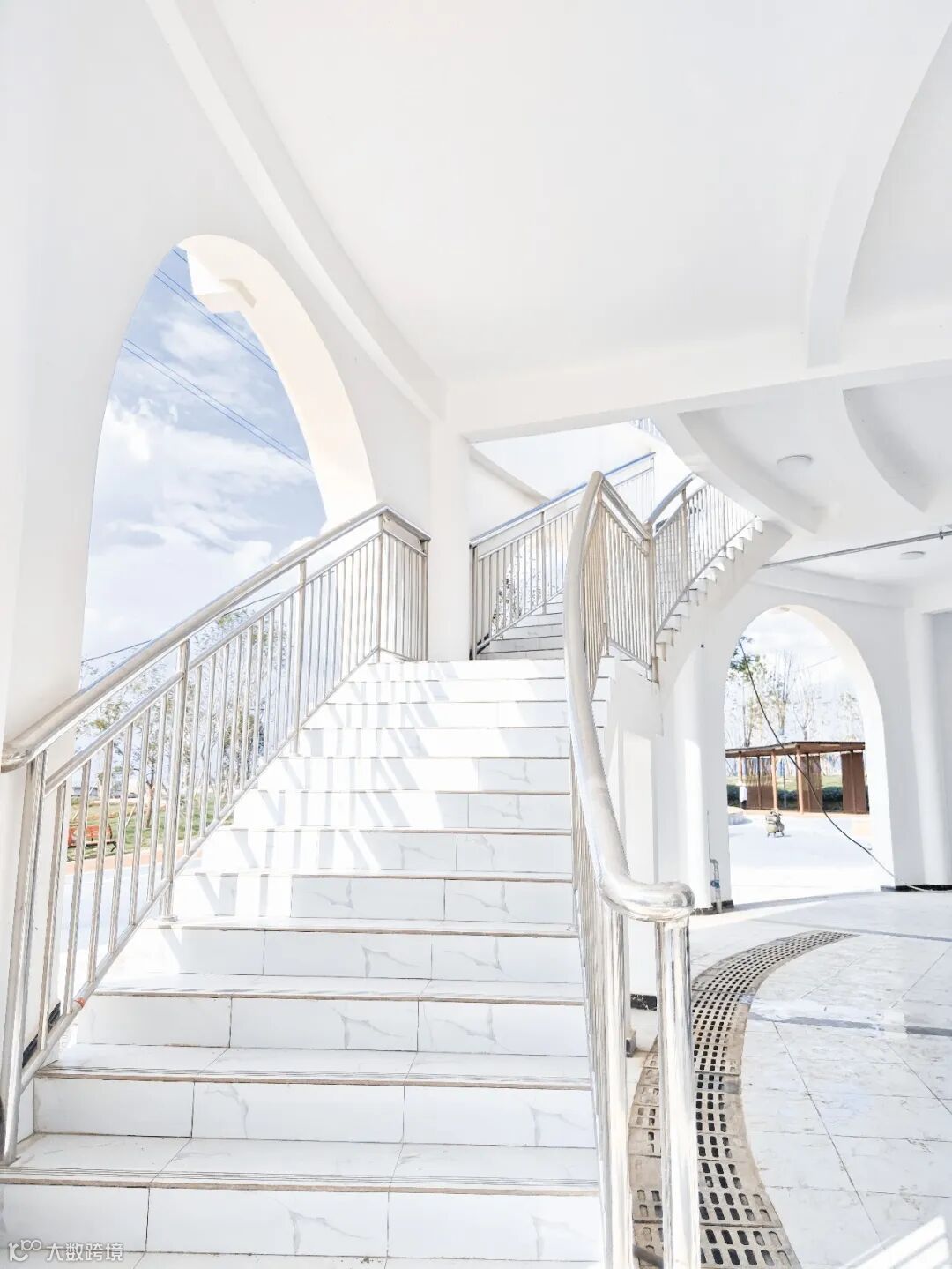 说到温润的白色,那一定少不了智造之翼的阶梯。巨大拱门尽显英伦风情,纯白阶梯宛如婚纱基地,往上一站,回眸间,便是好风景。
