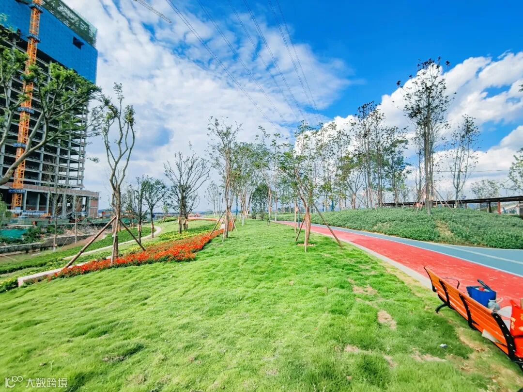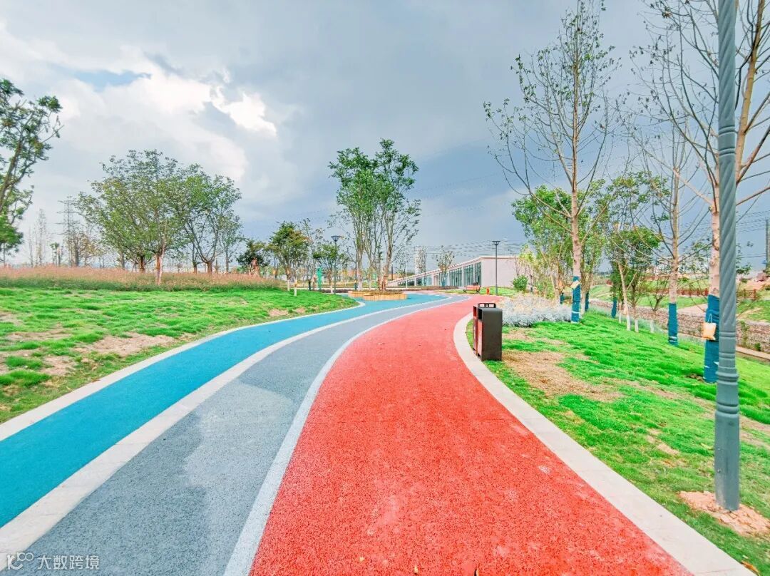 动力草坪、滨河绿化带、智慧跑道