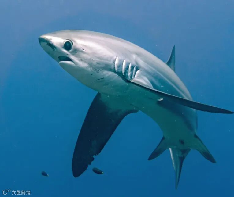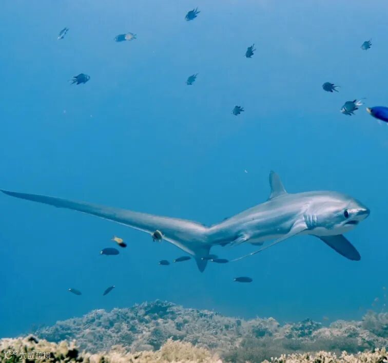长尾鲨划破深蓝的优雅弧线