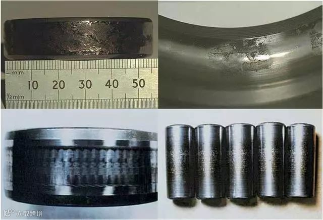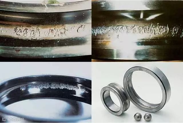 接触疲劳失效常见的形式是接触疲劳剥落。接触疲劳剥落发生在轴承工作表面,往往伴随着疲劳裂纹,首先从接触表面以下最大交变切应力处产生,然后扩展到表面形成不同的剥落形状,如点状为点蚀或麻点剥落,剥落成小片状的称浅层剥落。由于剥落面的逐渐扩大,会慢慢向深层扩展,形成深层剥落。深层剥落是接触疲劳失效的疲劳源。