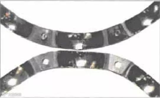 对称位置剥落表现在内圈为周围环带剥落,而外圈呈周向对称位置剥落(即椭圆的短轴方向),原因主要是因为外壳孔椭圆过大或两半分离式外壳孔结构,这在摩托车用凸轮轴轴承中表现尤为明显。当轴承压入椭圆偏大的外壳孔中或两半分离式外壳固紧时,轴承外圈产生椭圆,在短轴方向的游隙明显减少甚至负游隙。轴承在载荷的作用下,内圈旋转产生周向剥落痕迹,外圈只在短轴方向的对称位置产生剥落痕迹。这是该轴承早期失效的主要原因,经对该轴承失效件检验表明,该轴承外径圆度已从原工艺控制的0.8um变为27um。此值远远大于径向游隙值。因此,可以肯定该轴承是在严重变形及负游隙下工作的,工作面上易早期形成异常的急剧磨损与剥落。