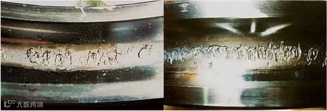 滚动轴承的生锈和腐蚀会造成套圈、滚动体表面的坑状锈、梨皮状锈及滚动体间隔相同的坑状锈、全面生锈及腐蚀。最终引起滚动轴承的失效。