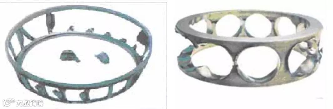 套圈断裂失效比较少见,通常是突发性过载造成的。产生原因较为复杂,如轴承的原材料缺陷(气泡缩孔)、锻造缺陷(过烧)、热处理缺陷(过热)、加工缺陷(局部烧伤或表面微裂纹)、主机缺陷(安装不良、润滑贫乏、瞬时过载)等。受过载冲击负荷或剧烈振动均有可能使套圈断裂。