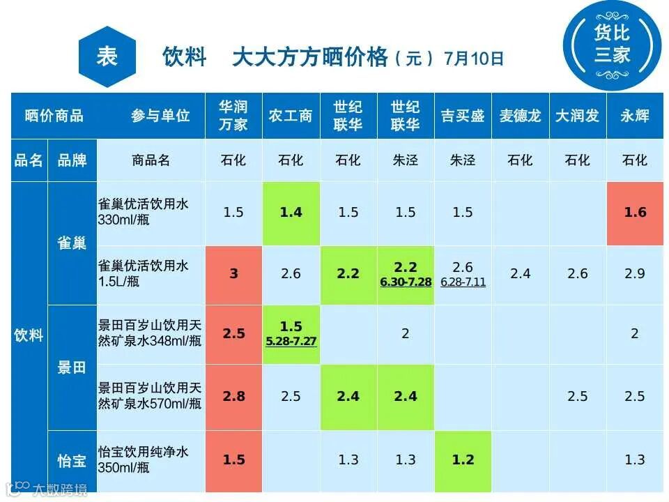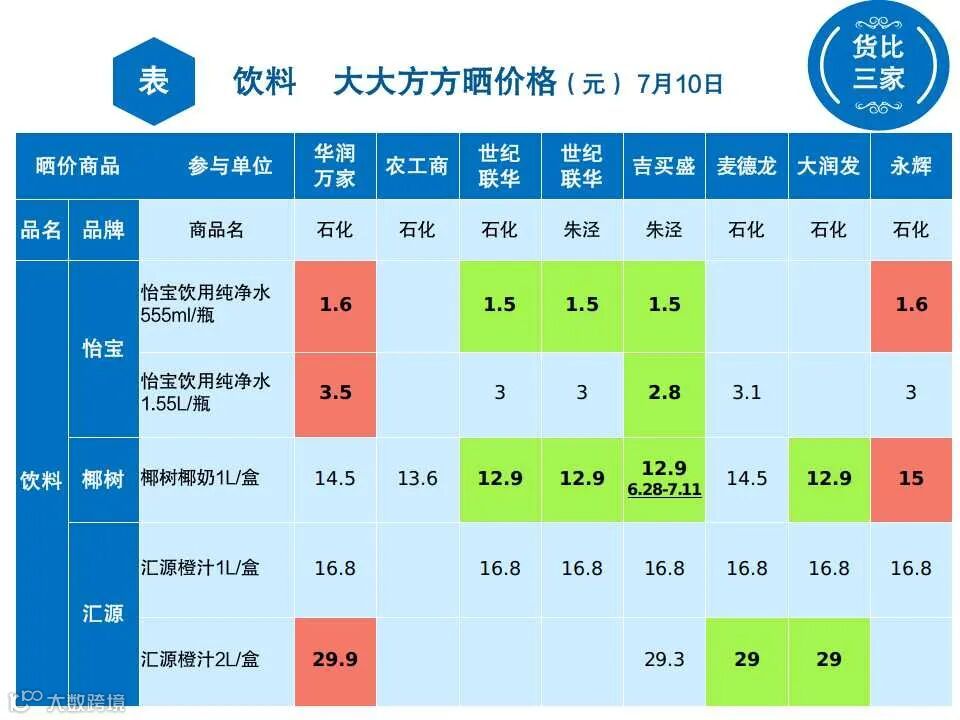 【金彩购物】金山哪里买饮料最便宜?8家超市,11个品牌大比价→