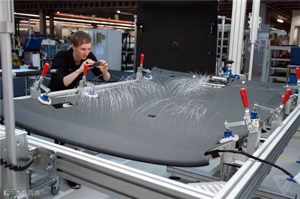 完成表面装饰工作后,车身壳体会送完装配线,让机械工人开始给那些钢铝架构加入组件。