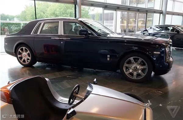 劳斯莱斯Phantom。在接待区后面停放的都是劳斯莱斯的近代车型,当中的焦点就是Phantom。