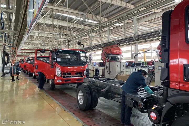 中国重汽王牌商用车生产车间内