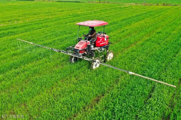 一位工人正驾驶喷雾机喷洒农药
