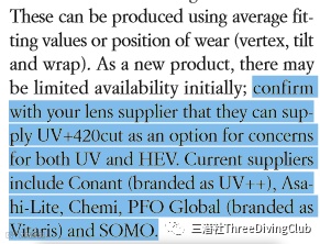 其中1是最基础的强化镜片,2/3/4分别是UV420防UVA的镜片、圆偏振镜片和自己家的AR,三潜社的总监就使用了偏振镜片。
