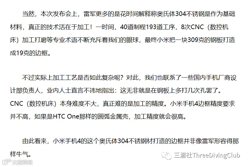 SUS304这个牌号(以下简称304)的的不锈钢还是很普遍的,小到家里的电器,大到工业级的设备都会使用这种对象经济的产品,之所谓经济是相对的,304比起316来说硬度相当,淡水中的耐腐蚀性几乎一样,但售价的确便宜很多(316在熔炼时的脱碳难度很高),还记得14年时小米闹出的笑话吗,现在还可以回味一下。