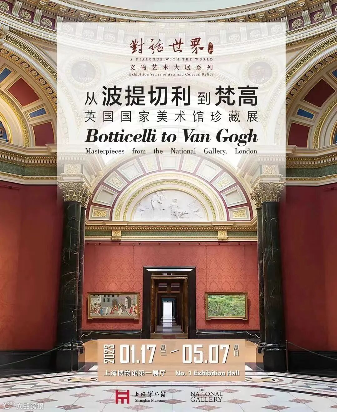 《从波提切利到梵高-英国国家美术馆珍藏展》展期为1月17日-5月7日,开放时间为9:00—17:00(16:00停止进场),每周一闭馆(除国定假日外)。本次展览中,观众可以欣赏到波提切利、拉斐尔、提香、戈塞特、卡拉瓦乔、普桑、克劳德、凡·代克,伦勃朗、卡纳莱托、康斯特布尔、透纳、塞尚、高更、马奈、莫奈以及梵高等艺术史中如雷贯耳的大师杰作;了解到意大利文艺复兴、北方文艺复兴、威尼斯画派、样式主义、巴洛克、荷兰画派、洛可可、古典主义、浪漫主义、印象派、后印象派等熠熠生辉的艺术流派。