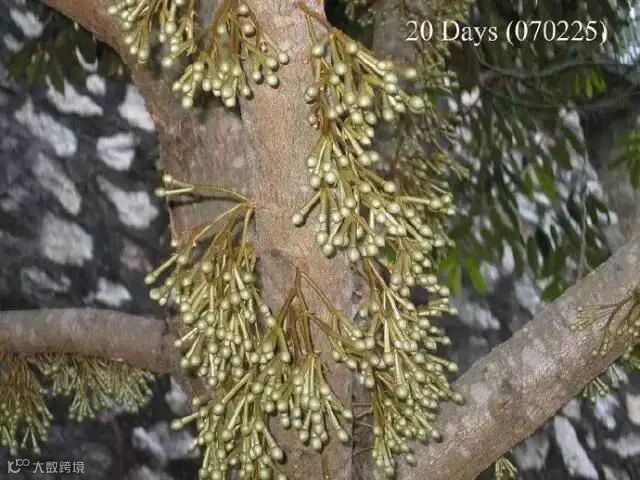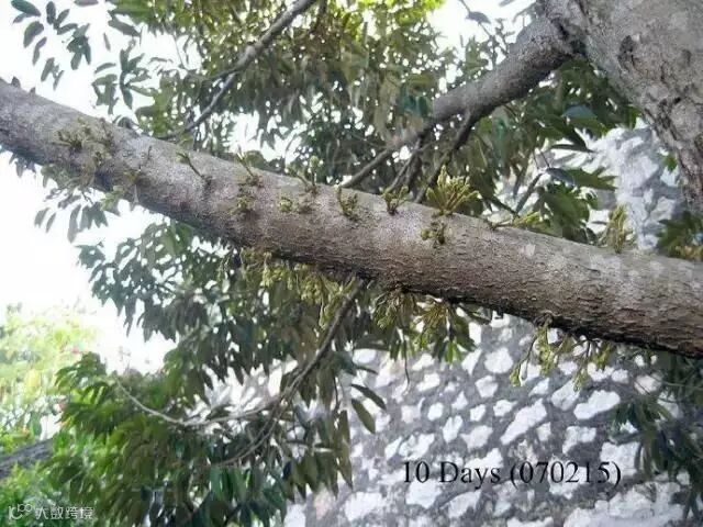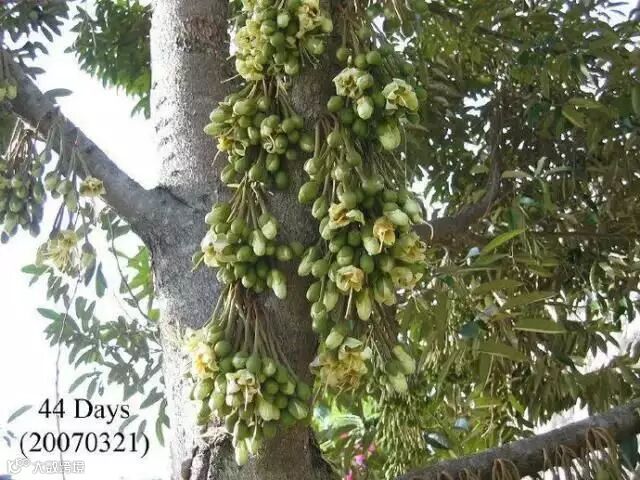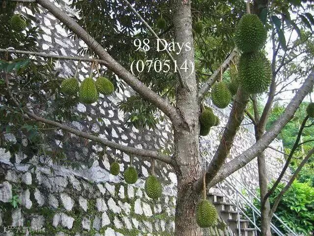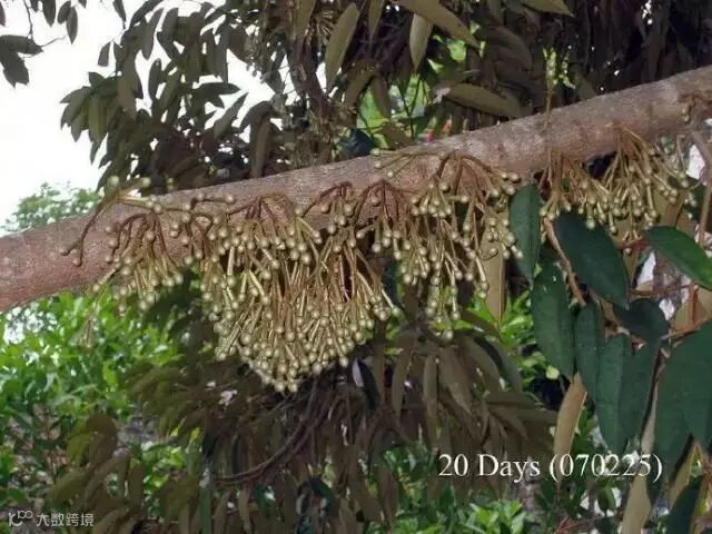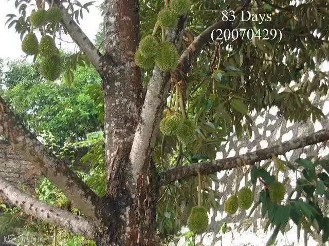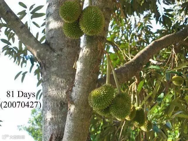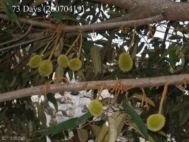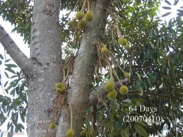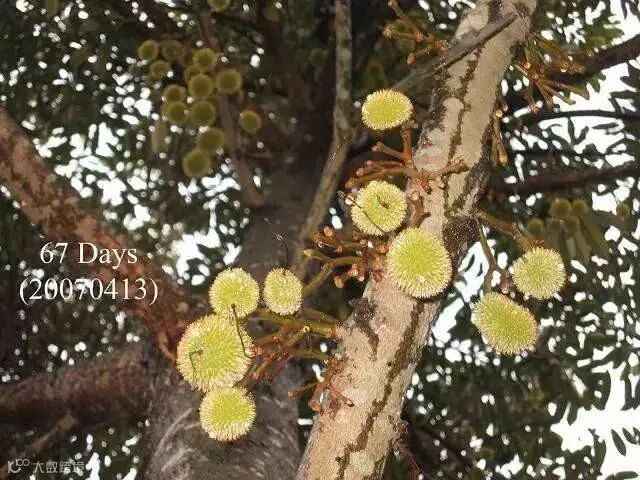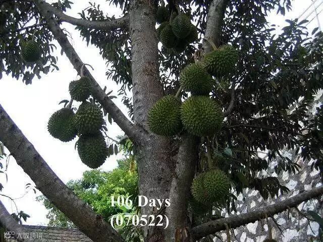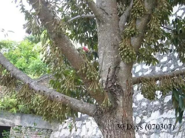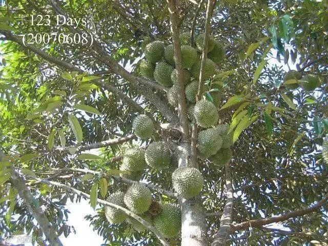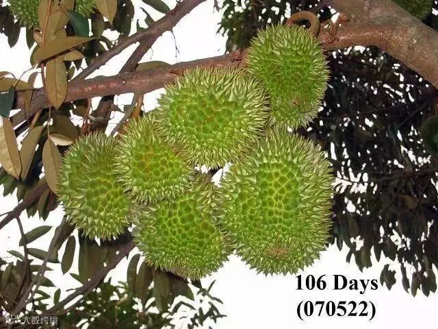 榴梿原产马来西亚,现在产量最高的是泰国、马来西亚和越南。大部分榴梿树有20多米高。也有少数树干低矮。榴梿树可生长五六十年,与一般热带水果生长期短的特点不同,它生长15年后才开始结果。每年结果一次或两次,果实长到3个月时进入成熟期。直接上图,一起来看看榴莲神奇的生长全过程吧。