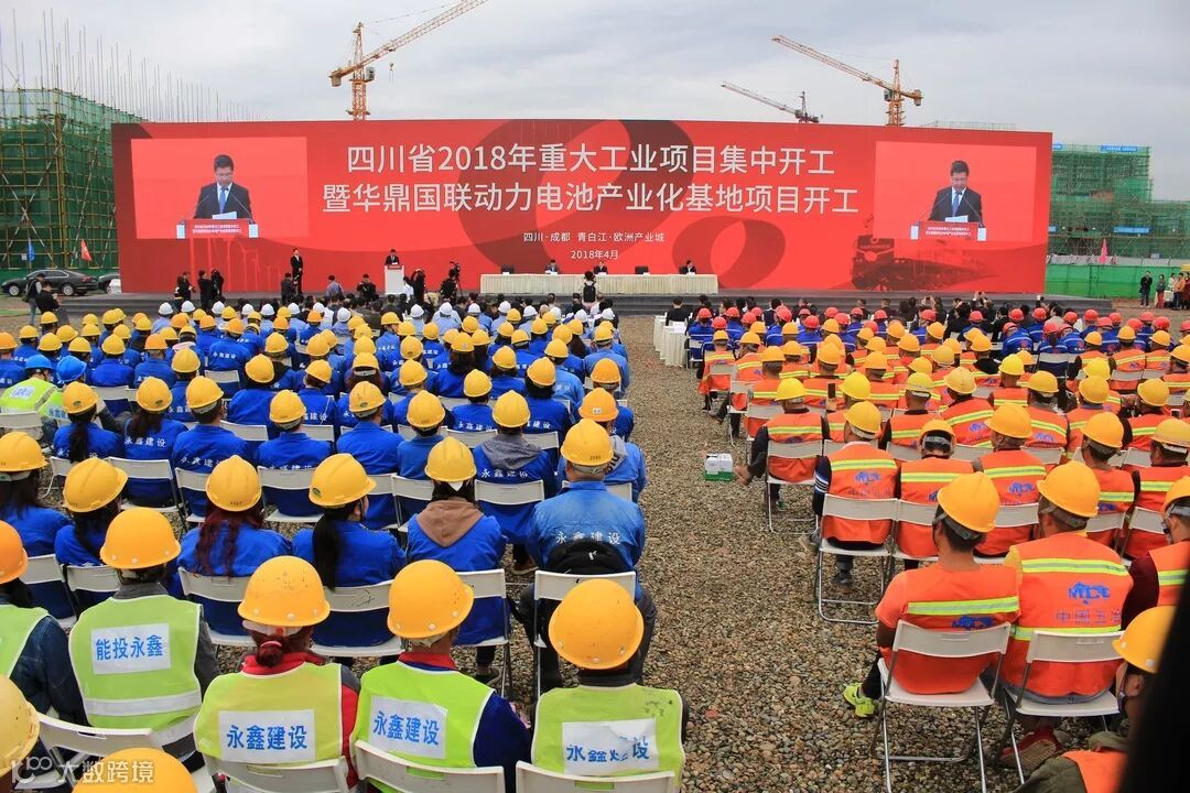 2018年4月25日,四川省2018年重大工业项目集中开工暨华鼎国联动力电池产业化基地项目开工在欧洲产业城举行