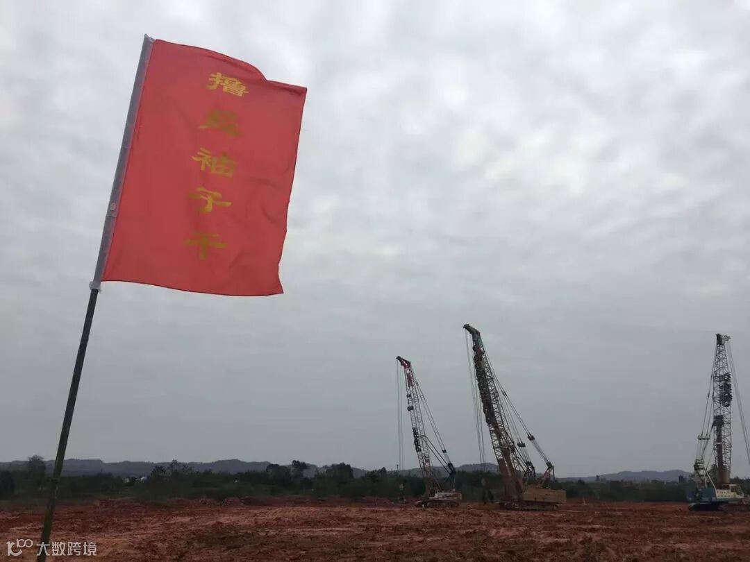 华鼎国联动力电池项目现场,正在进行厂房基础施工