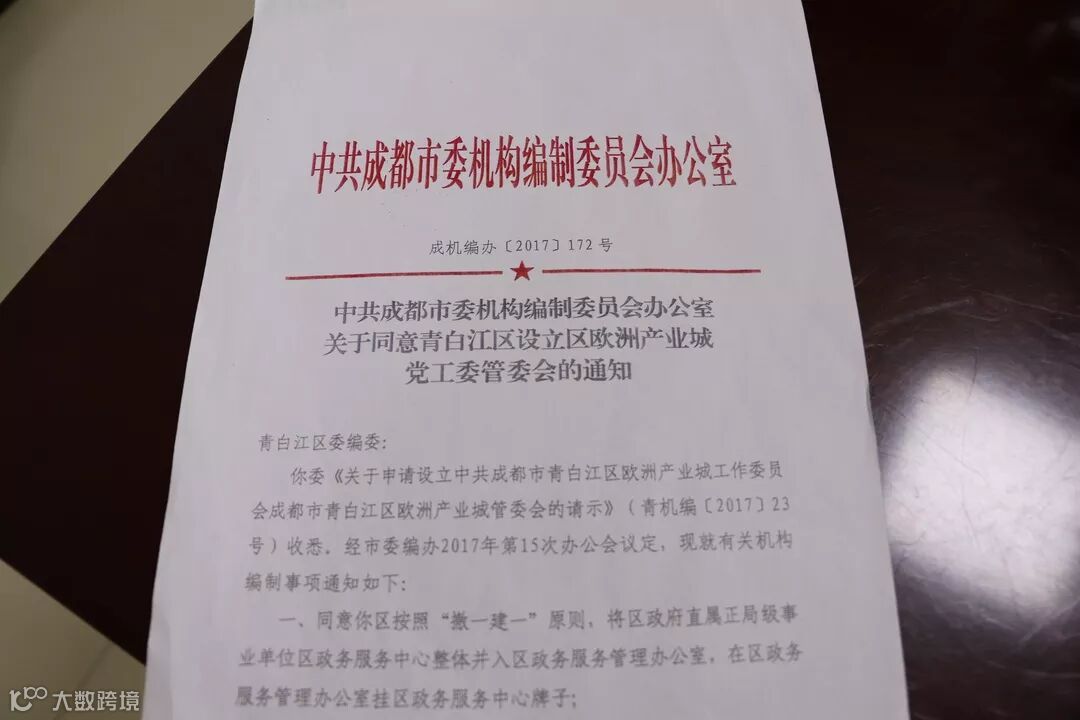 2017年9月19日,市委编办印发《关于同意青白江区设立欧洲产业城党工委管委会的通知》