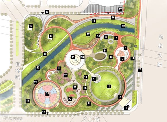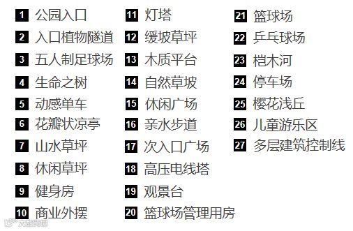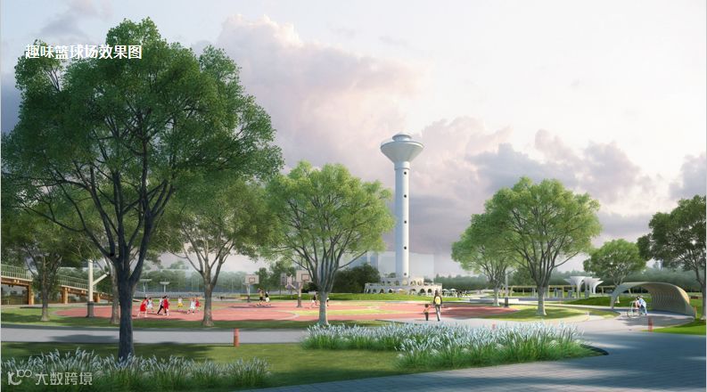 公园采用分区设计,划分为活力运动区、智慧商务区、休闲滨河带三区。包含宜人休憩步道、慢速骑行体验道、商务休闲和滨河休闲带以及五人制足球场、篮球场、健身房、乒乓球场、儿童游乐区等多元的体验活动场地。