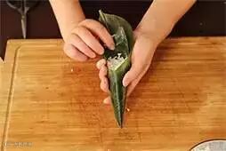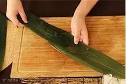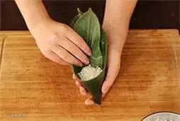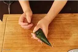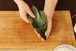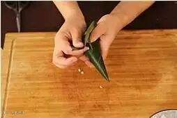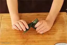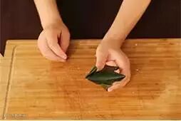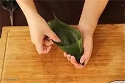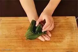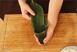 2.将粽叶卷成圆锥状