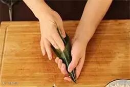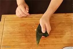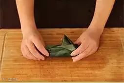 6.粽叶的尖端向一侧折叠