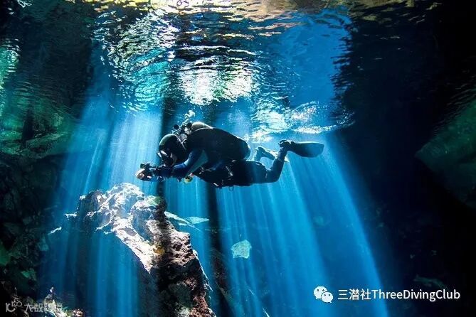 尤卡坦半岛著名的淡水天坑,是古代玛雅人认为的通往地下世界的入口,灿烂的阳光在阴暗的岩层之间反射,造就了一种飘渺的感觉,使这成为了潜水员的天堂。