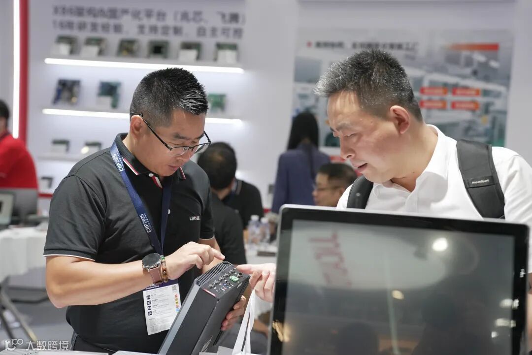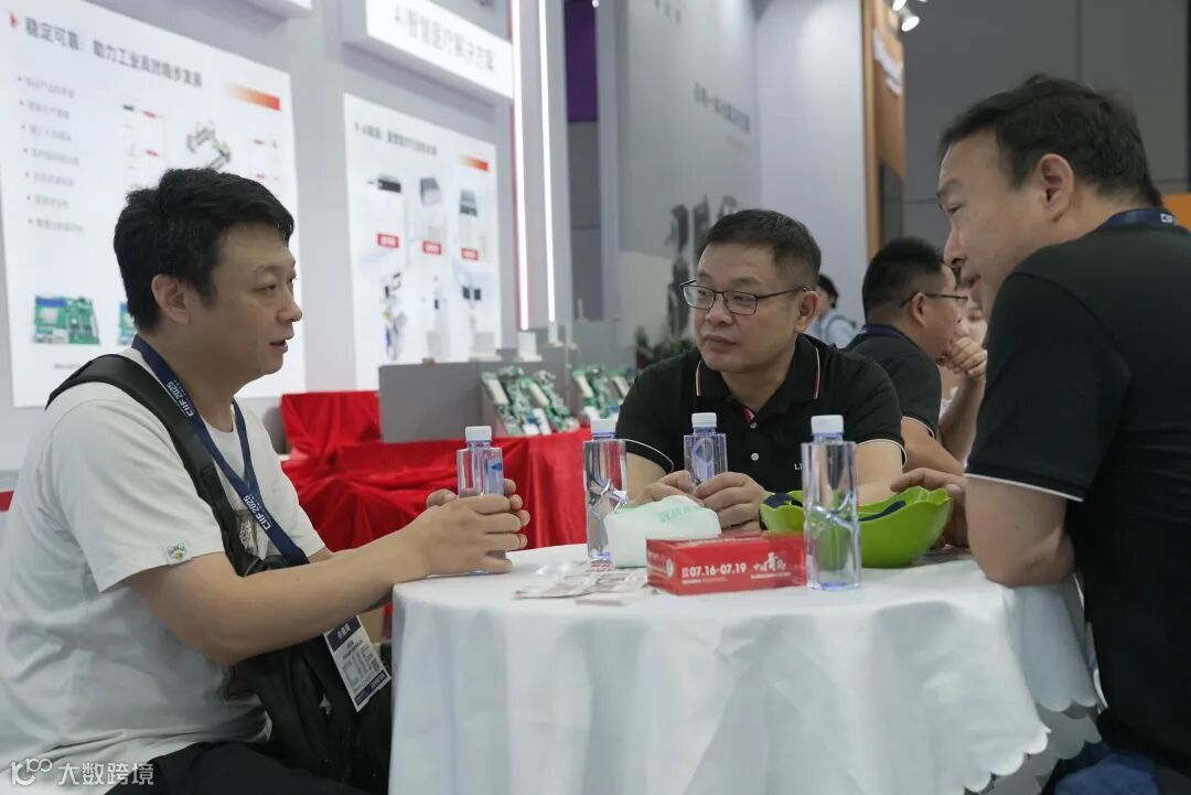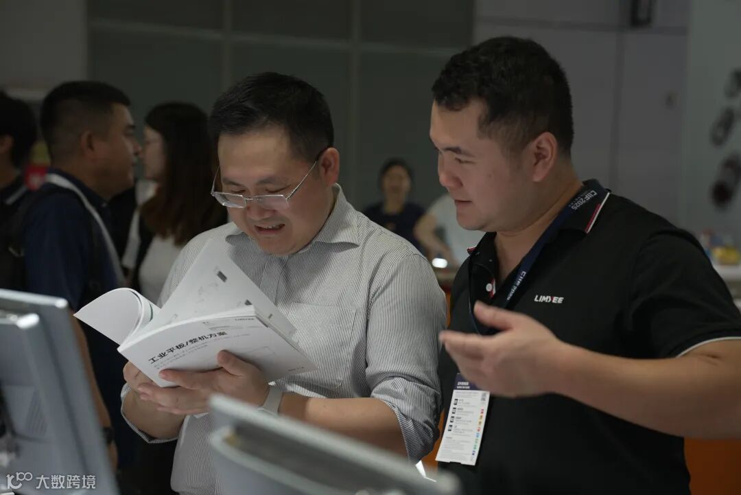 客户驻足凌壹展台,与凌壹工作人员深入洽谈产品合作
