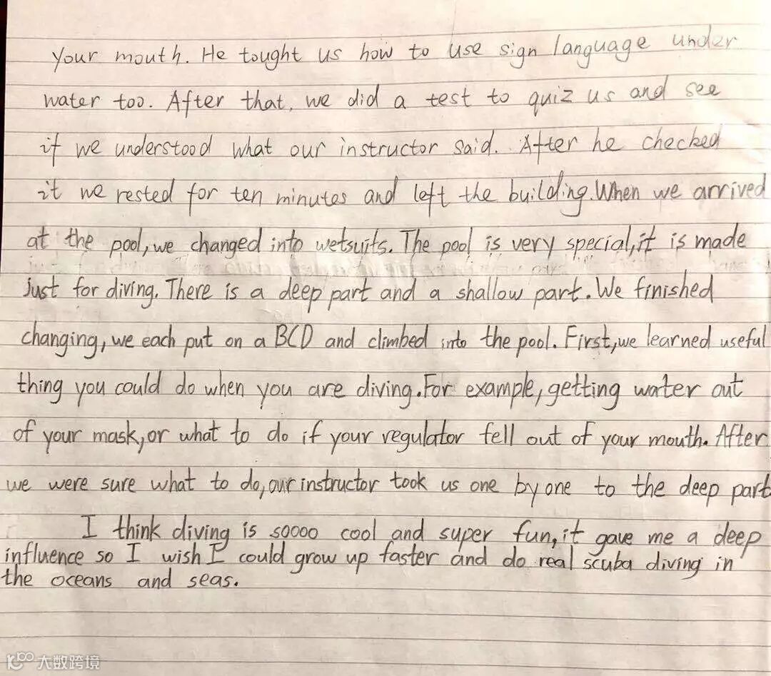 整个泳池过程约1-2小时,再回去的路上已经收到宝宝的短文啦,全英文哦!