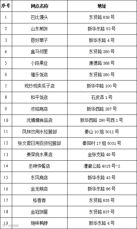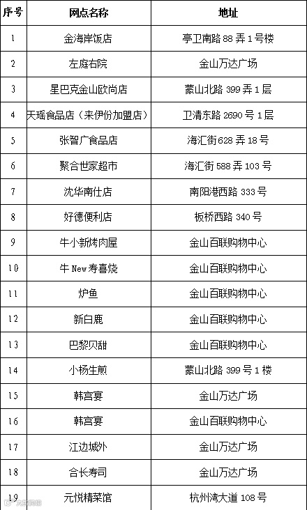 导读:金山区商业网点“白名单”(第四批)发布啦