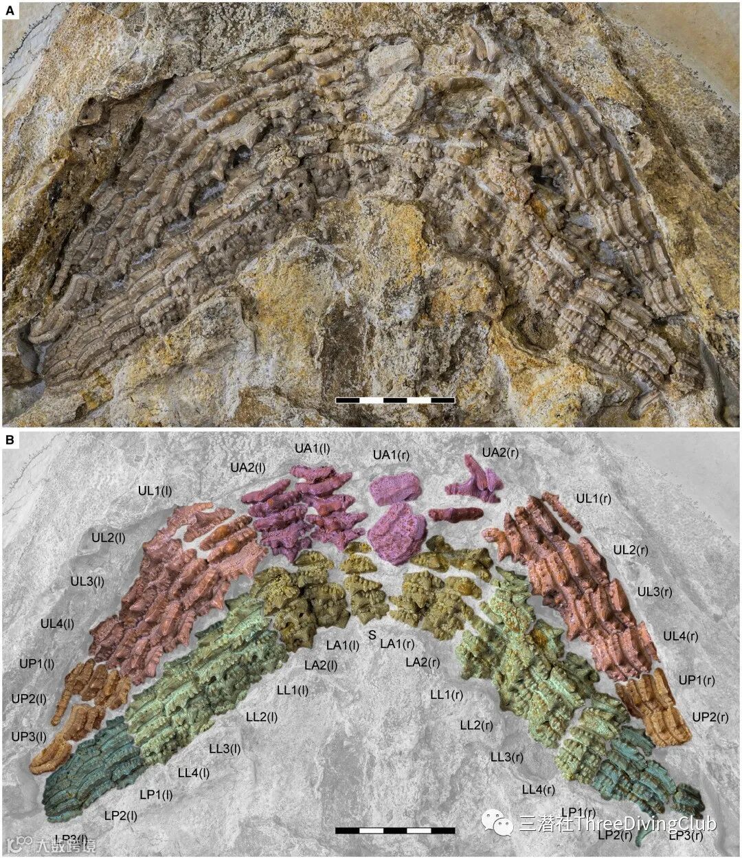 据研究小组称,Asteracanthus ornatissimus的齿列包含150多颗牙齿,每颗牙齿都有一个发育良好的中央尖,两侧还有几个较小的尖。