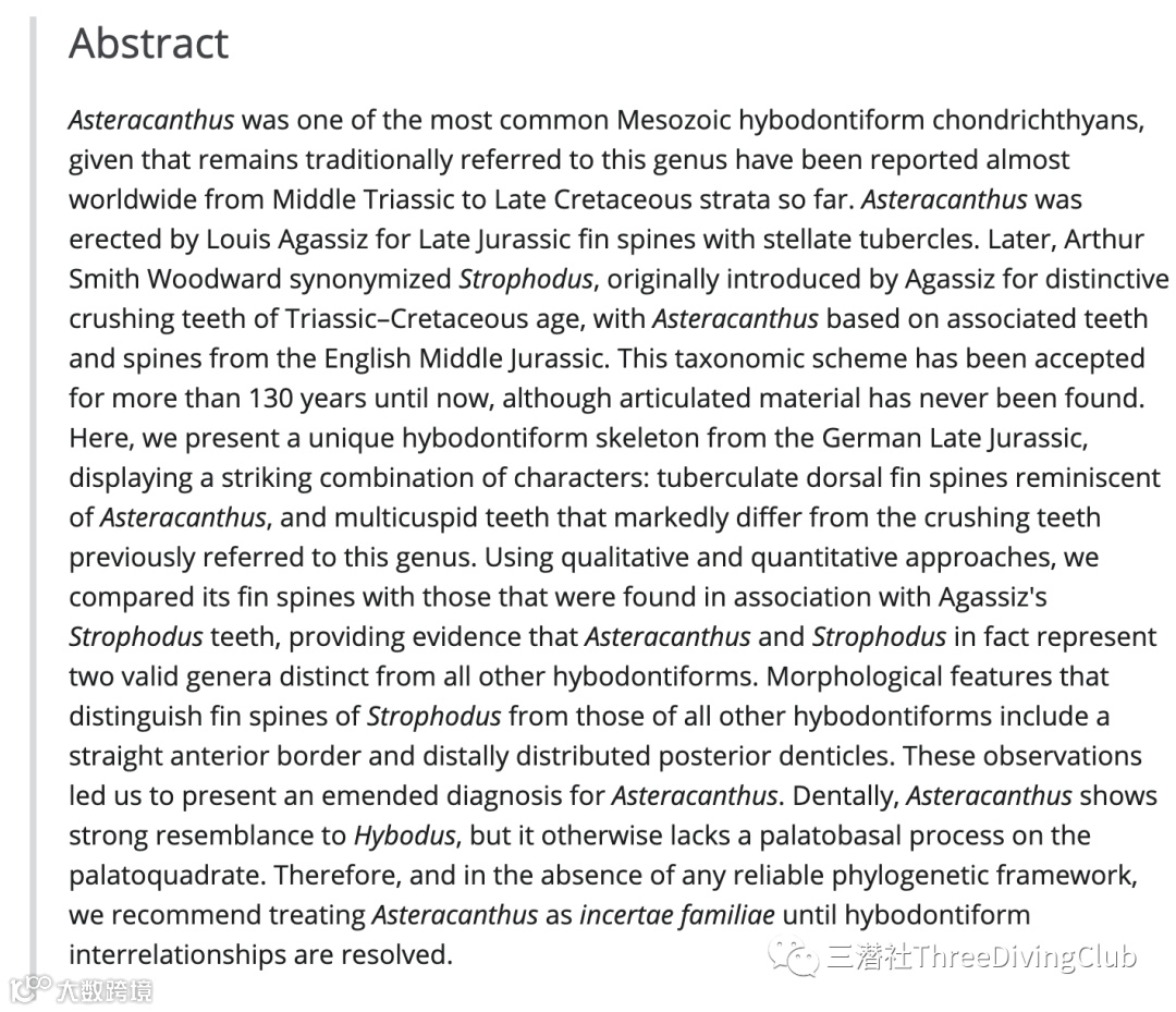 这次发现的Asteracanthus ornatissimus是一具保存得特别完好的新骨骼,带有齿列和鳍刺。