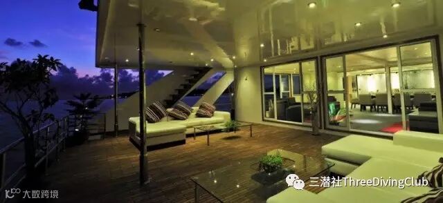 超豪华船宿潜水船 Mosaique 是马尔代夫唯一一艘在房间内配备 360 度景观和私人阳台的船宿潜水船,她其中一个设计目标是将室内和室外生活区域很好的结合起来。主甲板以及房间内的景观窗户让客人不会错过任何沿途环礁和泻湖的美景。