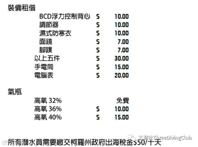 潜水:12次潜水(包括气瓶,配重费用,不含装备费)