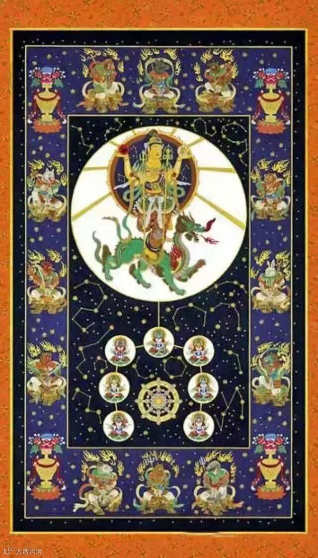 朝礼妙⾒菩萨,⾦轮佛顶。北⽃七星,九曜星君。⼆⼗⼋宿,⼗⼆宫神。本命