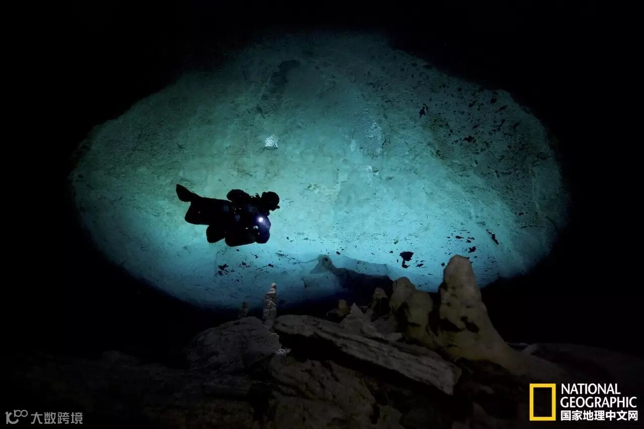 巴哈马的Mermaid’s Lair水下洞穴,在仅容一人通过的狭小入口之后是巨大的空间。