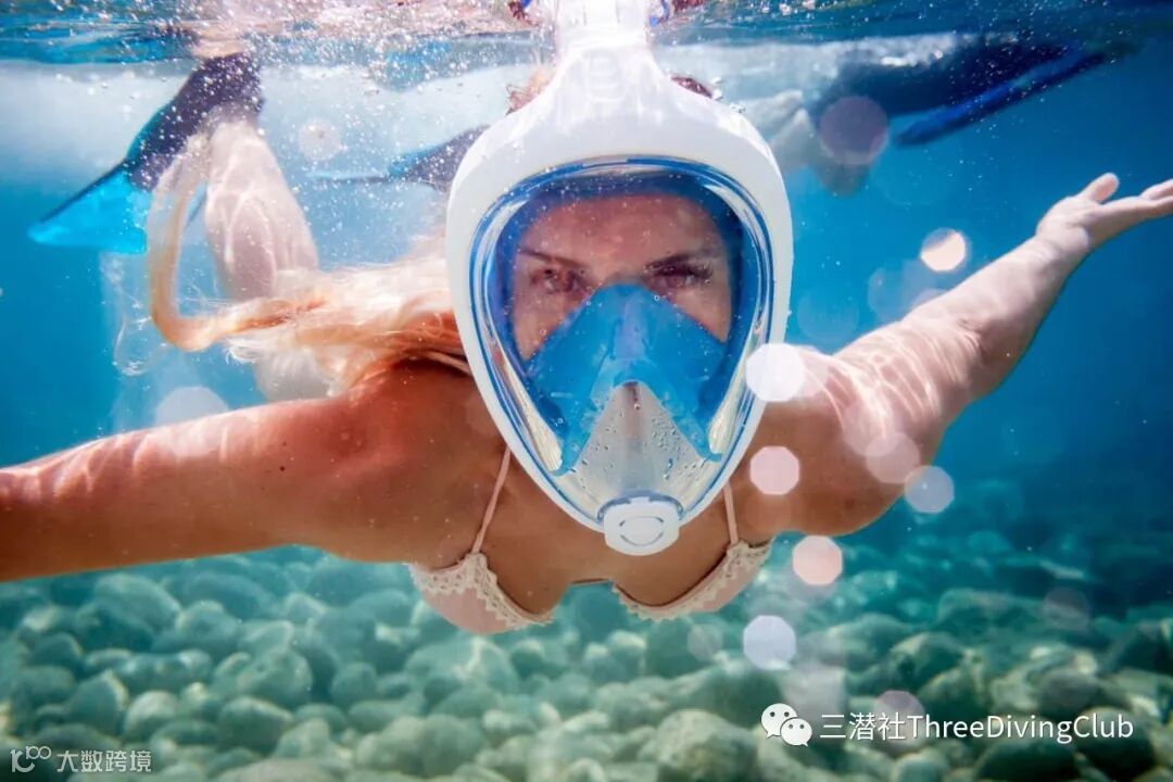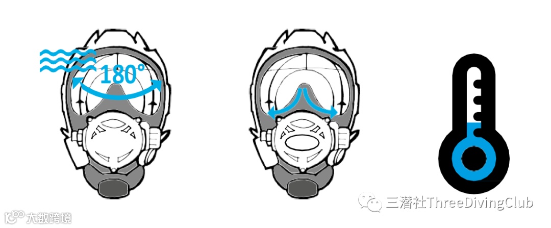 不易漏水及起雾 - 这对于脸型和表情丰富的潜水员是救星,PADI的美人鱼课程有一个章节叫“美人鱼面部表情管理”,平时习惯夸张的表情到了水下的确是种灾难,水会沿着法令纹频繁进入面镜,而且面镜更容易起雾。全面镜一下子把两个麻烦全部清除了。