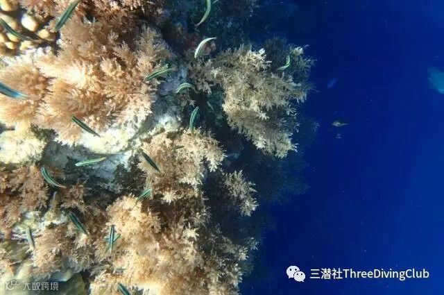 能见度:涨潮30多米,退潮15-20米。注:有些向导认为最好的能见度是涨潮带来的,称为“向外的海流(outgoing current)”,就是从蓝洞流向蓝角的海流。