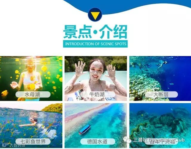 景点:小丑鱼的家、玫瑰珊瑚海底花园、七彩软珊瑚、德国水道、情人桥、大断层、长沙滩(独享婚纱show、美人鱼尾巴)